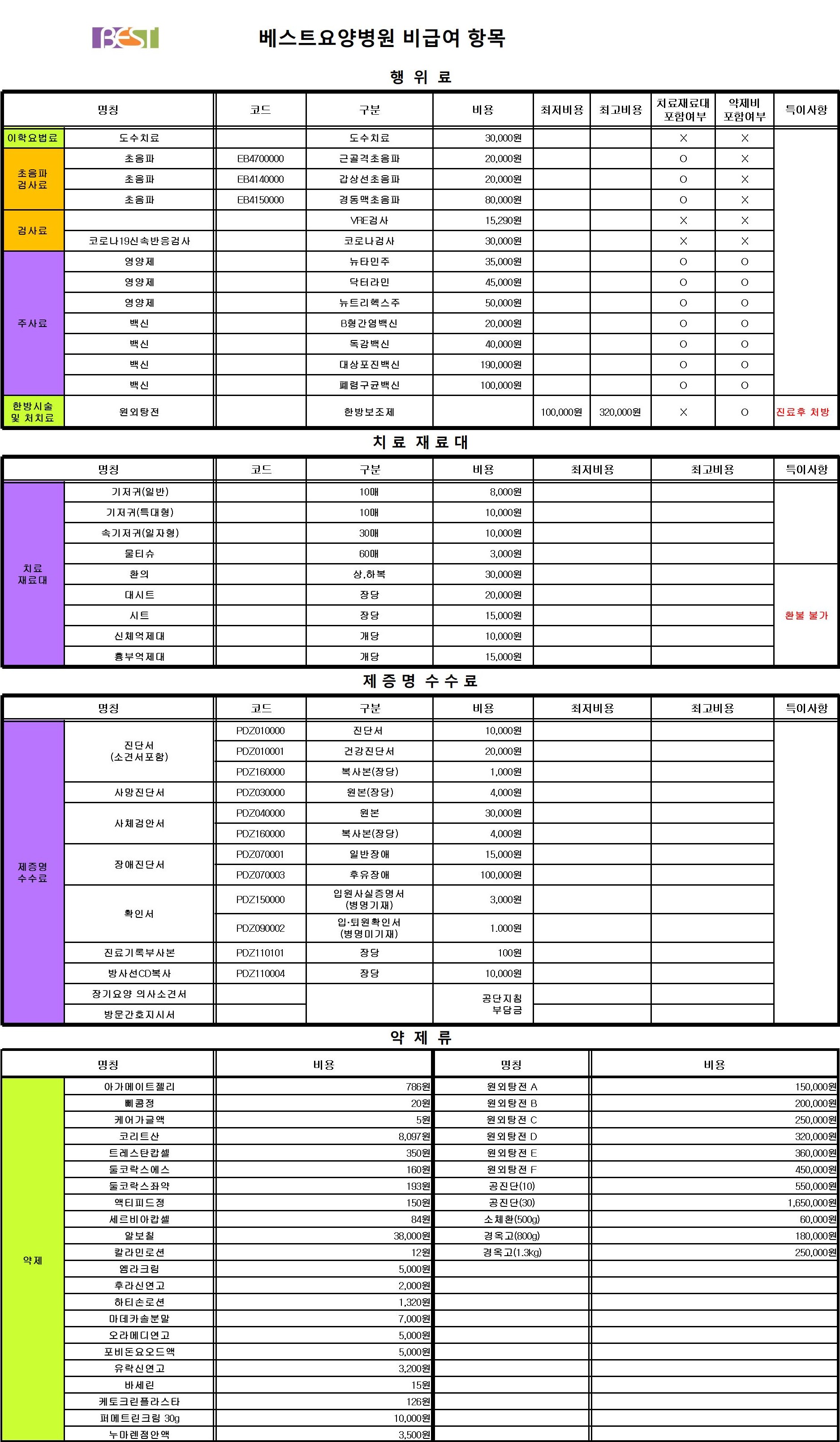 <베스트요양병원 비급여 항목 안내>이미지 파일을 클릭하시면 크게 보실 수 있으며, 첨부된 PDF 파일을 다운받아 인쇄 및 확대하여 보실 수 있습니다. #비급여항목#베스트요양병원 비급여