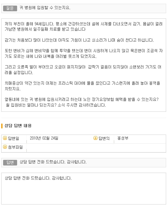귀 병원에 입원할 수 있는지요.? > 온라인상담실