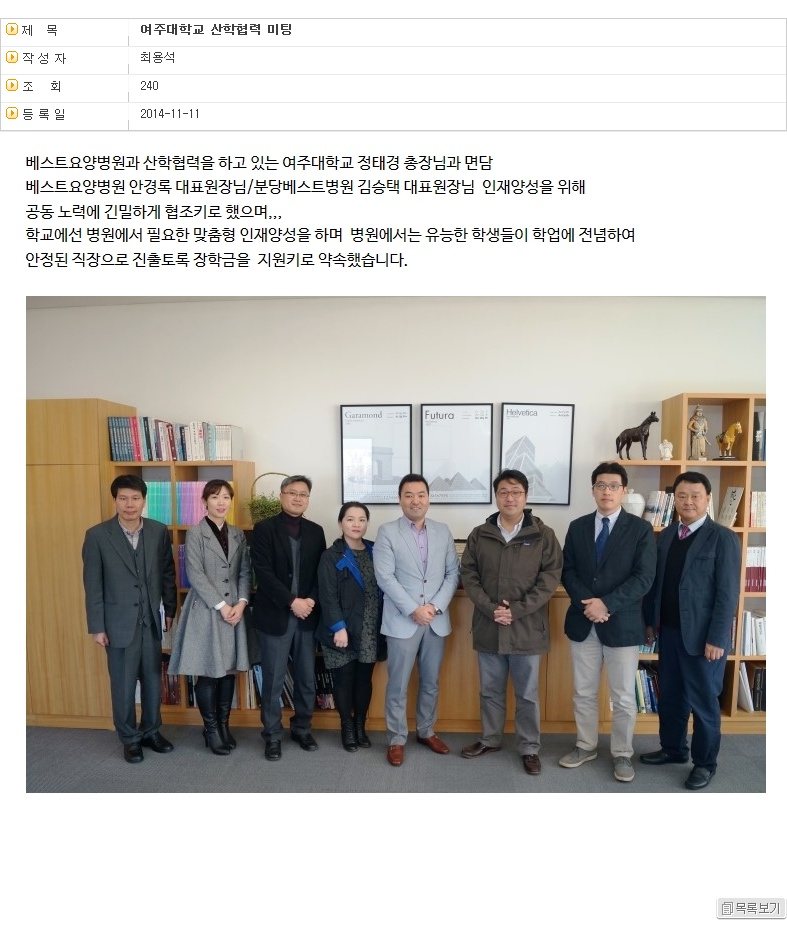 여주대학교 총장님과 베스트요양병원 산학협력 면담 > 병원소식