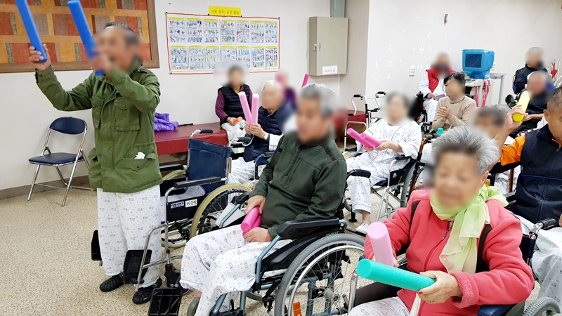 레크레이션 시간으로 응원봉을 함께 나눠주시면서
